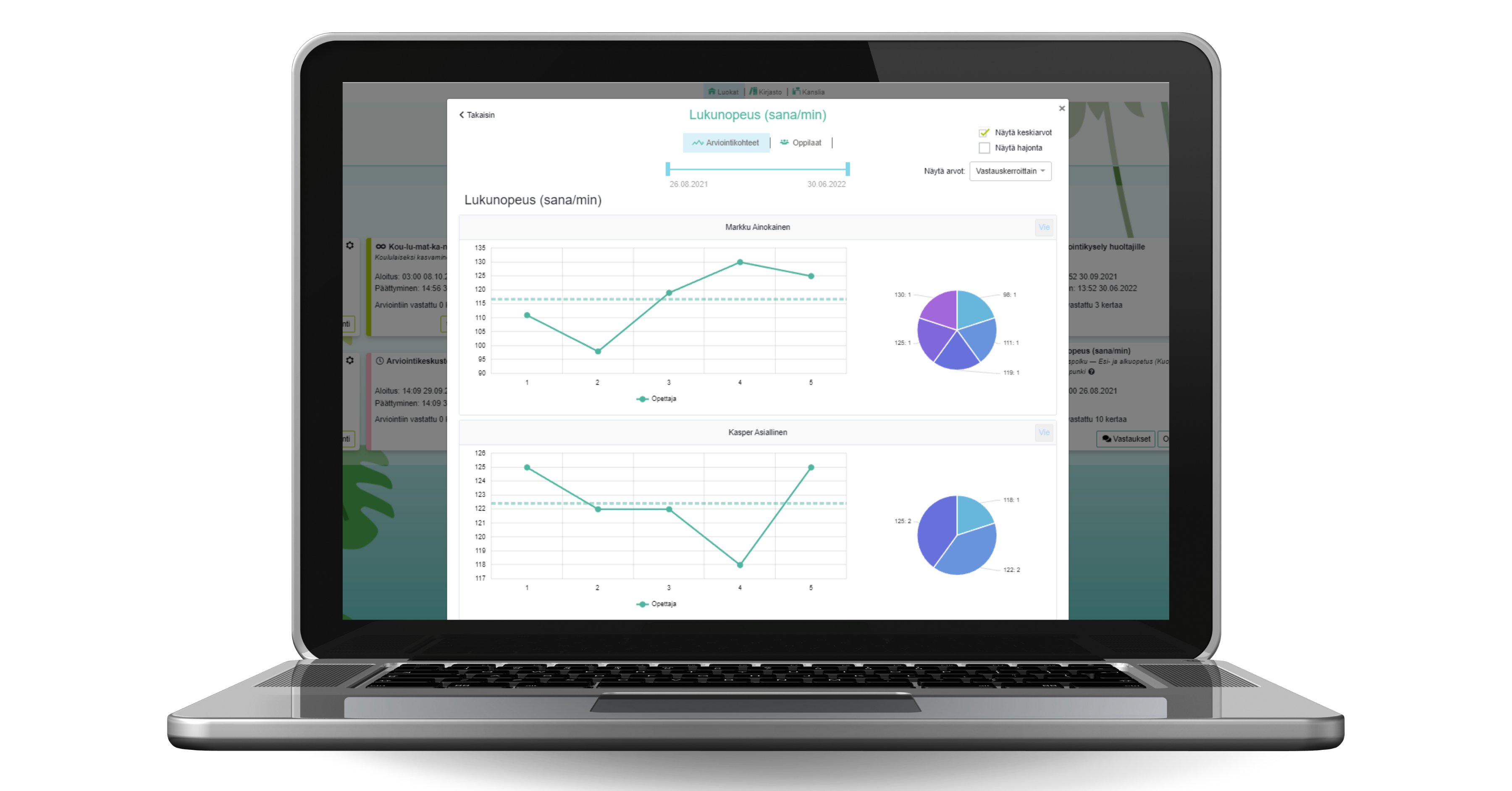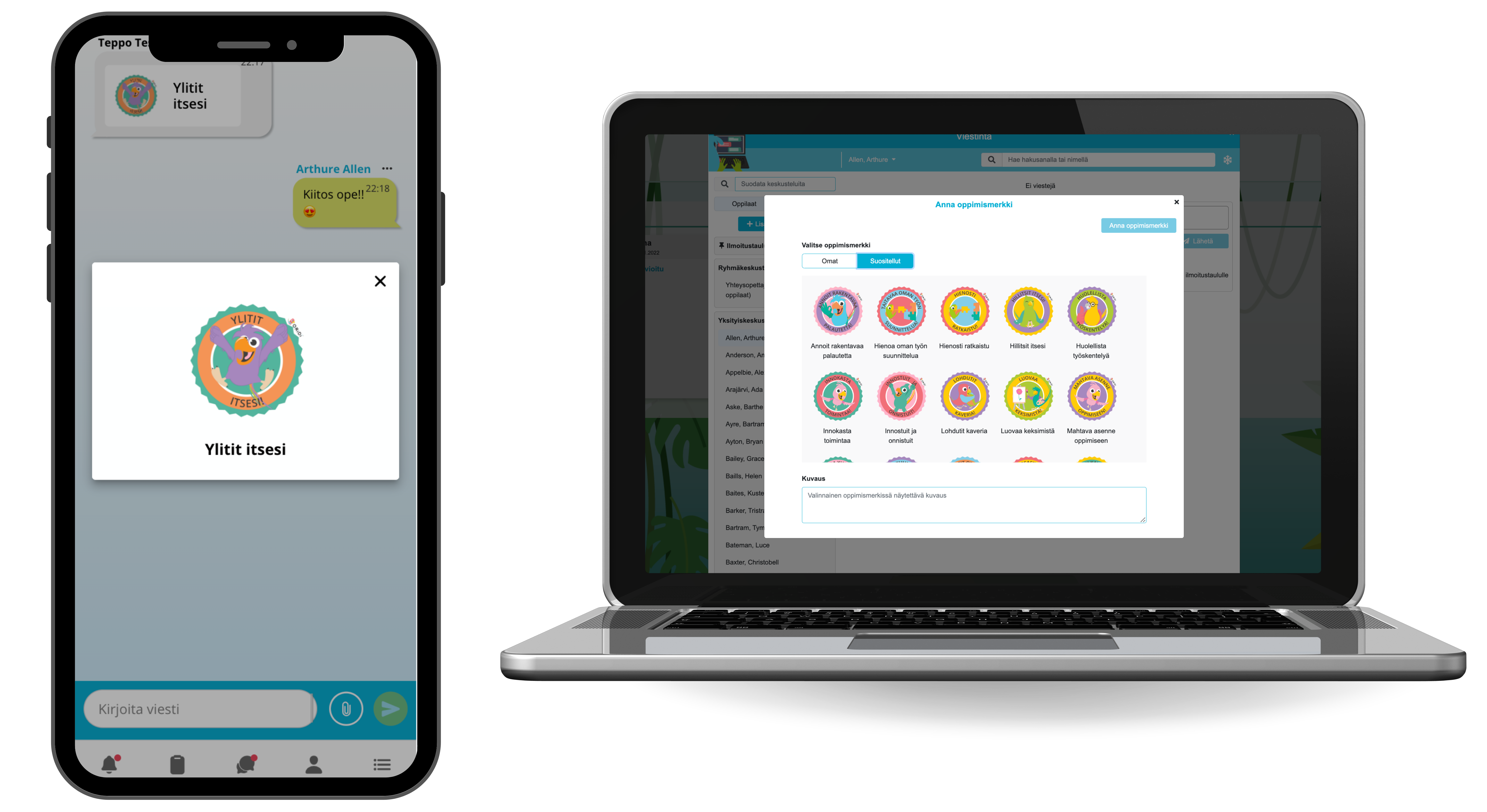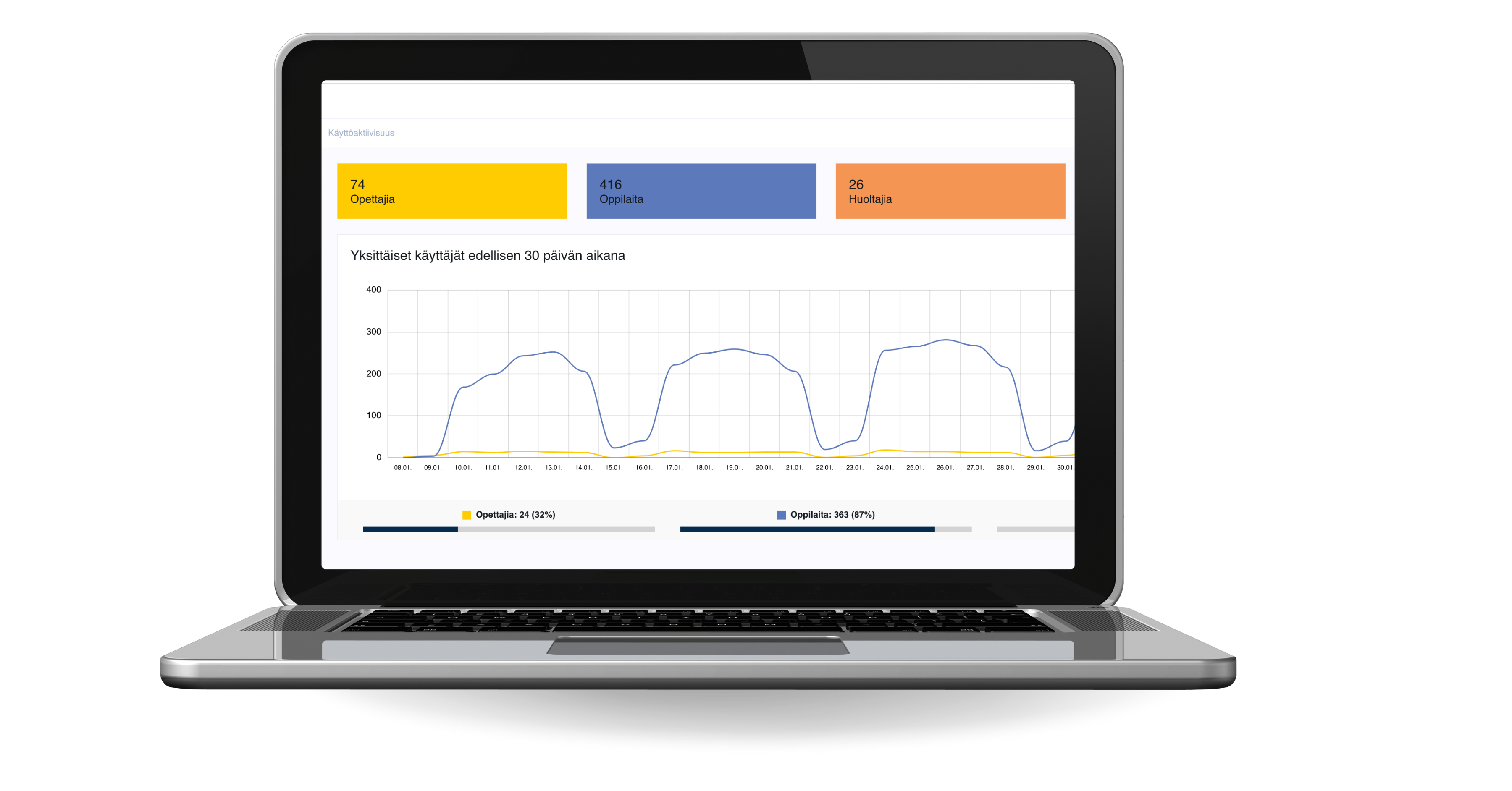 - Opettajien, oppilaiden ja huoltajien aktiivisuudesta on mahdollista saada raportti koulun tai kunnan johdolle.