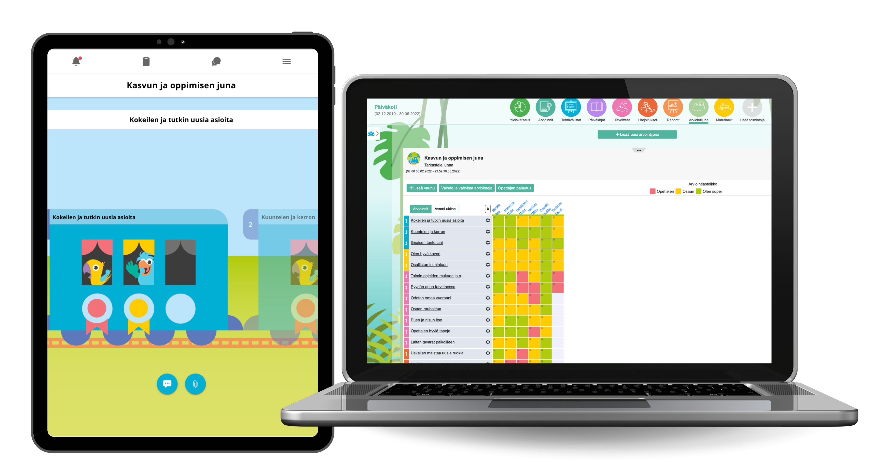 Alusta mahdollistaa oppilaan itse-, vertais- ja ryhmäarvioinnin sekä opettajan ja huoltajan antaman arvioinnin. Tehtävälistojen avulla opettaja näkee reaaliaikaisesti oppilaiden edistymisen annetuissa tehtävissä. Oppilas voi asettaa itselleen tavoitteita ja seurata tavoitteiden toteutumista yhdessä opettajan kanssa. Hän voi vastata opettajan antamiin itse-, vertais- ja ryhmäarviointeihin, itsearvioida hänelle suunnattuja tehtäviä sekä reflektoida oppimistaan päiväkirjaan sanoin ja monipuolisesti valokuvin, videoin, äänitteiden, leipätekstin ja emojien avulla. Oman edistymisen seuraaminen auttaa oppilasta ymmärtämään paremmin omaa oppimistaan. Harjoitustoiminnon avulla oppilas voi tehdä pieniä automaattisesti korjautuvia harjoituksia oppiaineen sisältöihin liittyen.